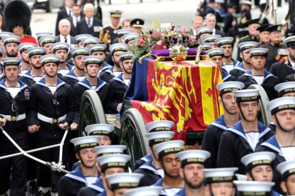 El féretro fue escoltado por 142 marineros de la Marina Real, una tradición que se remonta al funeral de la reina Victoria en 1901.