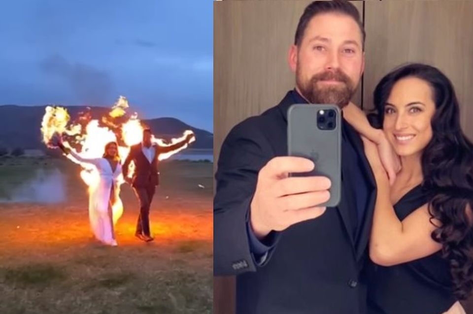Cuando llegó el momento del festejo, la pareja entró tomada de la mano y de repente el ramo de la novia comenzó a prenderse fuego. Luego la llama se extendió al vestido y de ahí al traje del novio.