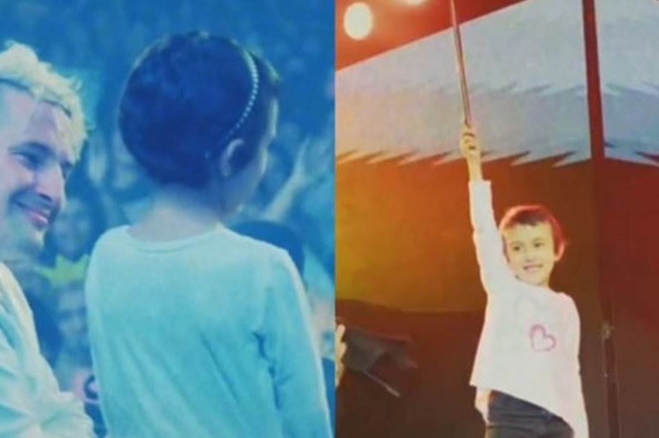 A partir de allí comenzó un juego entre Olivia y el público, en el que la pequeña subía la mano y los fanáticos que se encontraban en el show gritaban, mientras que cuando la bajaba, se quedaban callados. Luego Ricky fue a buscar un palillo de batería, que hacía de “varita mágica”, para que Olivia pudiera usarla y hacer “trucos mágicos” con las pantallas del concierto, lo que generó la sorpresa y emoción de la niña.