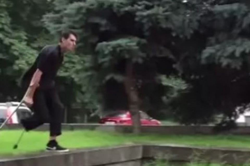 Un hombre que sólo tiene una pierna ha hecho una serie de increíbles trucos con el monopatín y acrobacias de parkour. A Ivan Palchikov, de 23 años, de Kiev (Ucrania), le amputaron un pie hace cinco años, pero eso no ha mermado sus ambiciones deportivas.