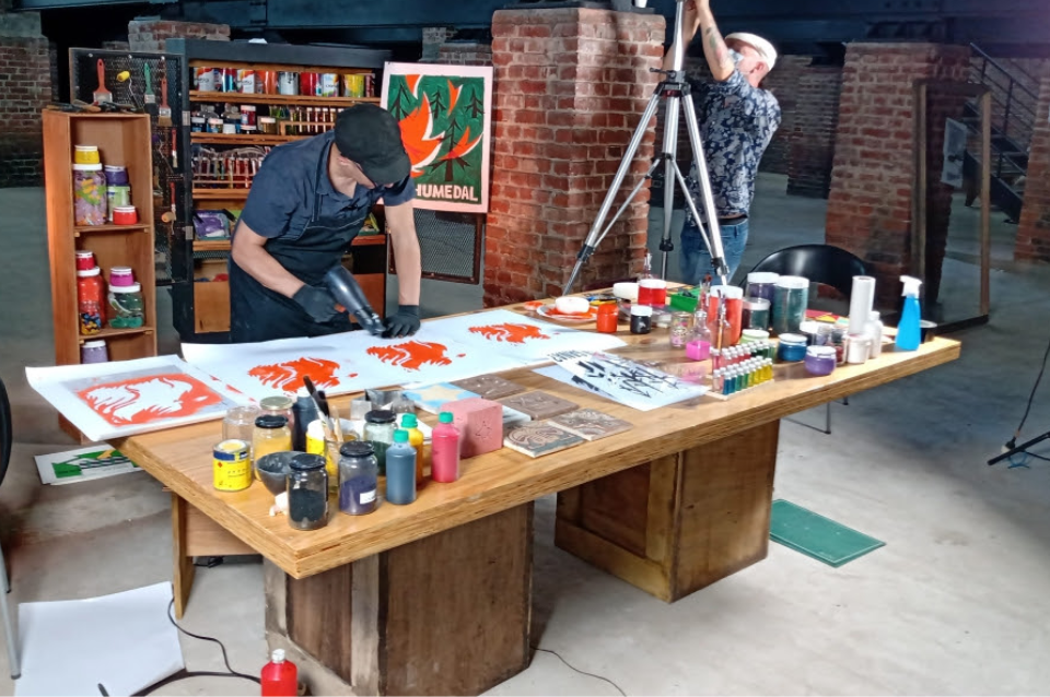 Aborda de la estampación serigráfica al mosaico calcáreo, de la gráfica popular al oficio de letrista: desde las calles y las redes sociales como espacio inspirador, como soporte para la experimentación.