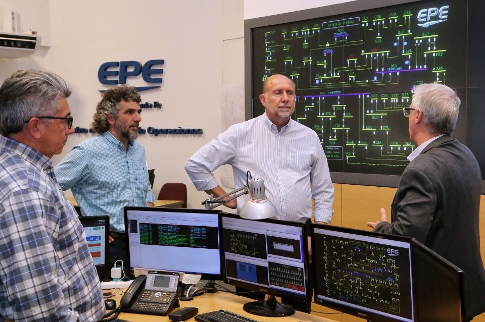 El gobernador Omar Perotti también visitó el Centro de Control de Operaciones de la EPE en la ciudad de Rosario, instalaciones desde donde se operan las 75 estaciones transformadoras en alta tensión, en tiempo real y más de 56.000 kilómetros de líneas eléctricas.