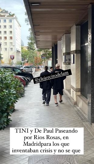 Las cosas cambiaron, ya que el mismo Ángel de Brito posteó otra historia vinculada a la pareja, pero esta vez se mostraba a Rodrigo de Paul y a Tini Stoessel caminando muy amorosos por las calles de Madrid. En la foto se lee: "Tini y De Paul paseando por Ríos Rosas, Madrid. Para los que inventaban crisis y no sé qué".