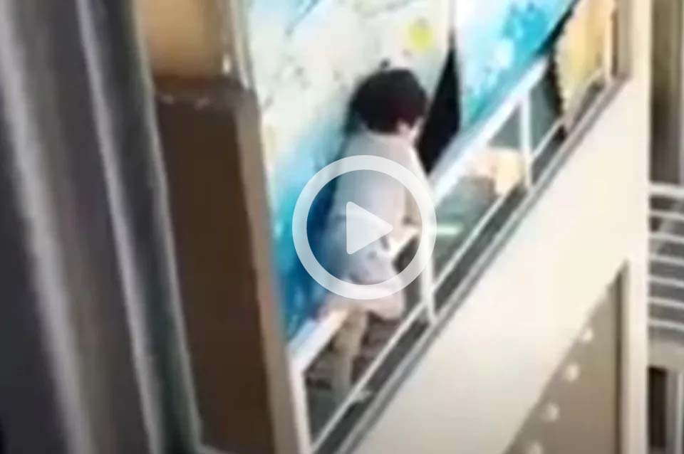 Las imágenes son elocuentes y muestran a un nene al borde de una tragedia. Por un descuido de su niñera, un nene de unos 6 años se cuelga de la baranda de un balcón del piso 21.