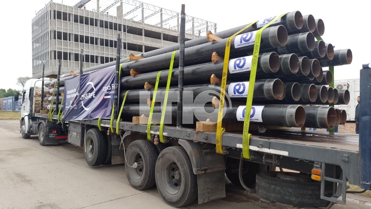 Este jueves, llegó el primer camión con cañerías para la construcción del Gasoducto Metropolitano.