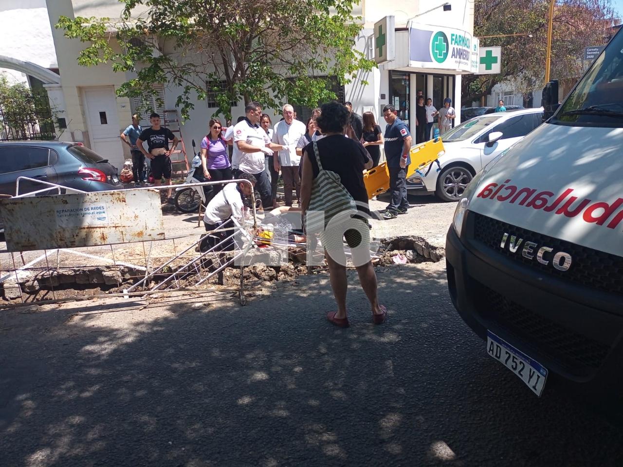 En el mediodía de este jueves, una mujer cayó dentro de un pozo de una obra de Aguas Santafesinas. Ocurrió en la intersección de Saavedra y Tucumán donde la mujer al girar se encuentra con el corralito, lo choca y cae dentro del pozo.