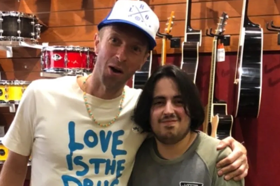 Chris Martin fue a una casa de música del centro porteño y tocó con los vendedores