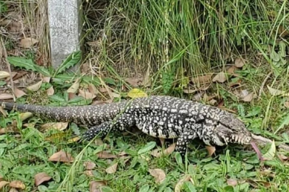 Personal de la Sección Ecológica, perteneciente a la Dirección General Policía Comunitaria rescató un lagarto overo que se encontraba en el ingreso de una vivienda de la ciudad capital.