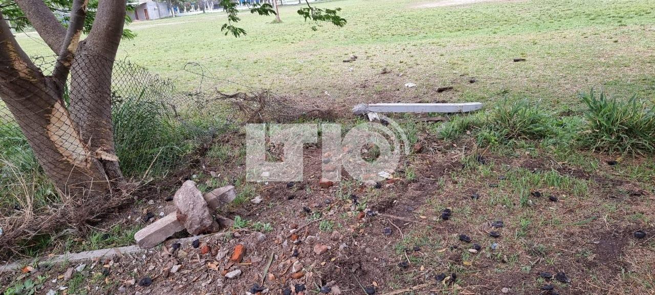Ocurrió en la esquina de calle Larrea e Italia, donde un vecino vio lo sucedido y le contó a los encargados del club, que esta mañana se encontraron con el tejido roto y varias columnas arrancadas desde la base.