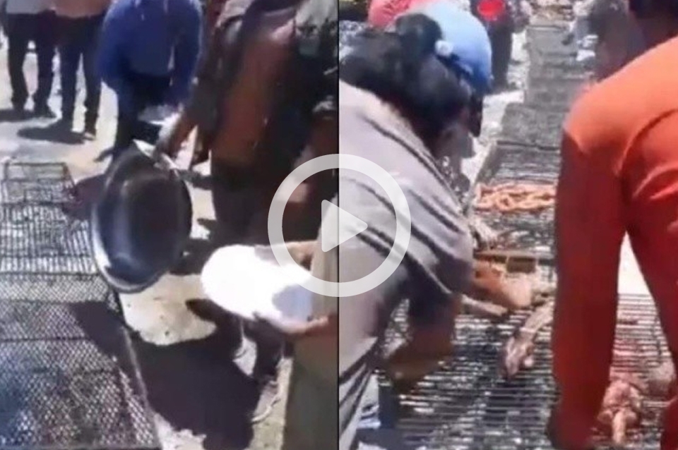 El hecho quedó registrado en varios videos que comenzaron a circular en la provincia y que hicieron viral lo sucedido. En los mismos se ve cómo varios hombres agarran tenedores y cuchillos y se roban toda la carne y las achuras.