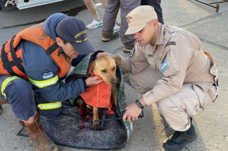 Efectivos de la Prefectura Naval Argentina (PNA) rescataron a una perrita atrapada en uno de los muelles del puerto de la ciudad de Puerto Deseado, en la provincia de Santa Cruz. Dieron con ella, debido a que escucharon su llanto.