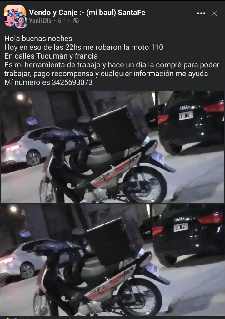 "Mi moto tiene cuatro mil kilómetros. La compré el lunes y la saqué el miércoles" contó la víctima que hizo una publicación en sus redes sociales en donde pida que quien tenga información, se comunique con ella.
