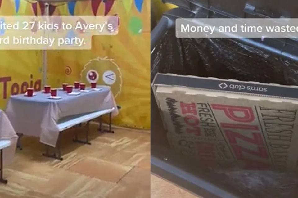 Breanna subió un video en TikTok donde muestra el salón preparado para el evento, pero vacío. “Invitamos a 27 chicos al tercer umpleaños de Avery”, comienza explicando mientras muestra la larga mesa, llena de vasos de cartón, y las paredes con globos de colores.
