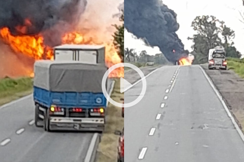 #Ahora | Accidente fatal en Ruta 11 Km 74 altura San Justo, se prendió fuego y explotó un camión luego de chocar con un auto. Un fallecido y dos heridos de gravedad.