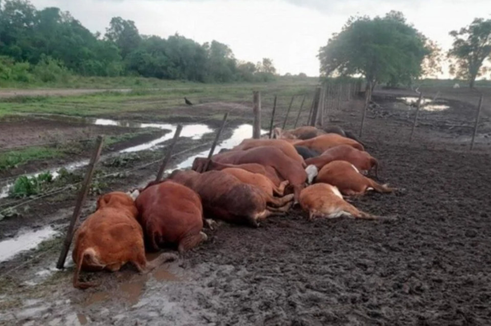 Un total de 65 terneros murieron al ser fulminados por un rayo en un establecimiento rural cercano a la localidad de Villafañe, en el sudeste de Formosa.