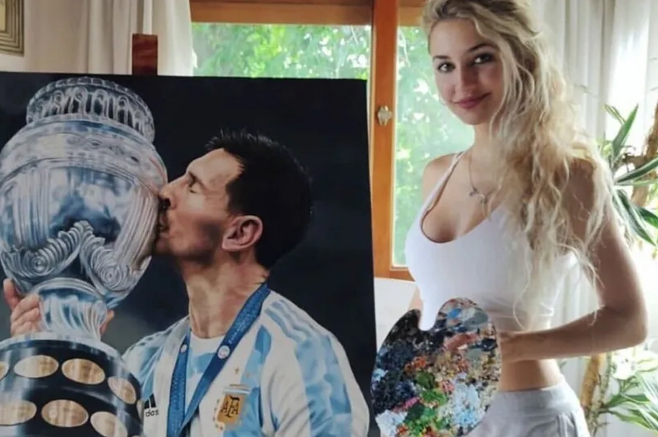 “No lo llegué a conocer. Estaban aislados, en burbuja sanitaria, no lo pude conocer, pero se la entregaron a Messi”, dijo la artista. De aquel trabajo nació otro con Diego Maradona como protagonista, donado por Agostina a su municipio para una subasta benéfica. Su cuadro obtuvo el doble de dinero que una camiseta de la Selección Argentina firmada por Messi.