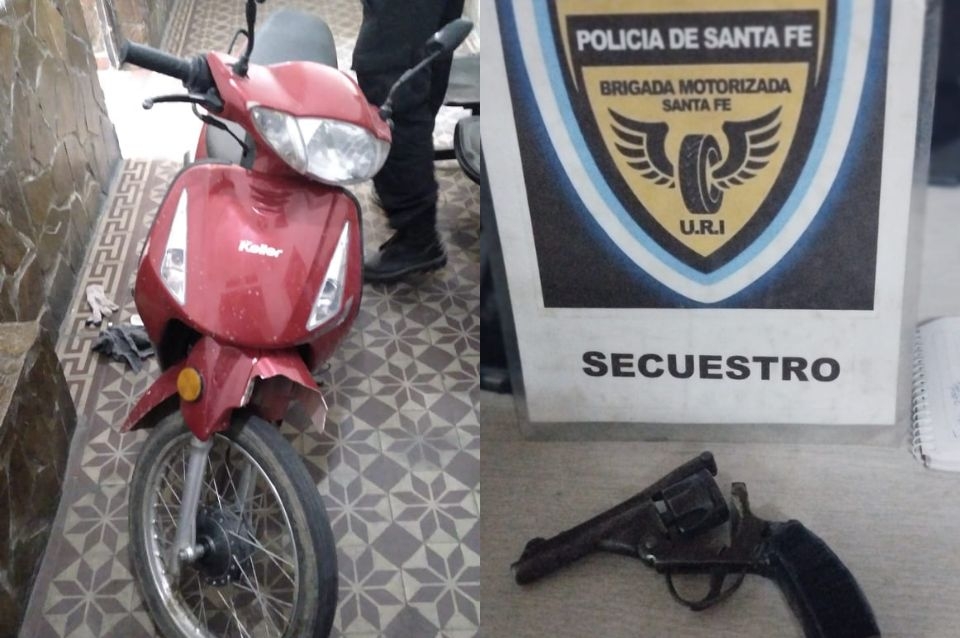 Minutos más tarde fueron comisionados a Belgrano y Av. Galicia por la sustracción de una moto. Arribaron al lugar y entrevistaron a la víctima, quien manifestó que dos jóvenes le sustrajeron el motovehiculo marca Honda CB-190 bajo amenazas con un arma de fuego y dejaron abandonada una moto marca Honda Wave, constando que esta última fue sustraída horas antes. Posteriormente, en coordinación con la central de emergencias 911, policías de la Brigada Motorizada lograron interceptar a los involucrados de 19 y 14 años en Urquiza al 4.400 donde recuperaron la moto sustraídas recientemente y secuestraron un revolver cal. 22.