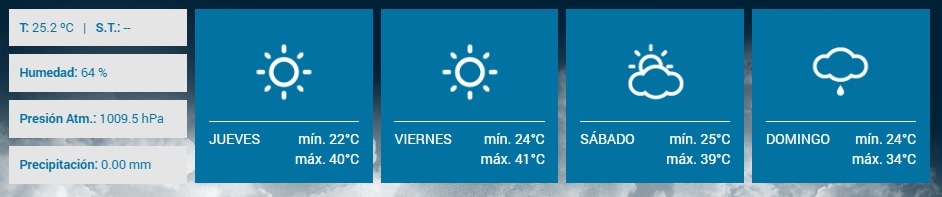 Para el viernes el cielo estará despejado. Las temperaturas se mantendrán en ascenso y por la tarde podría alcanzar los 41 grados. Vientos moderados a regulares predominando del sector nor/noreste.