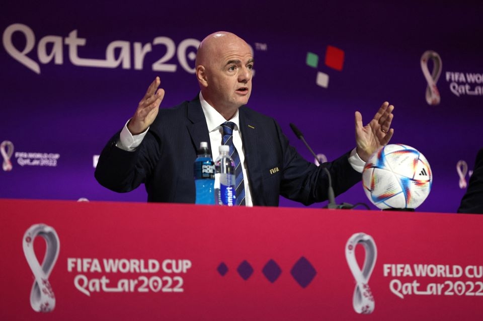 El presidente de la FIFA realizó una sorpresiva visita al Centro de Prensa montado en Doha, horas antes del partido inaugural del Qatar 2022