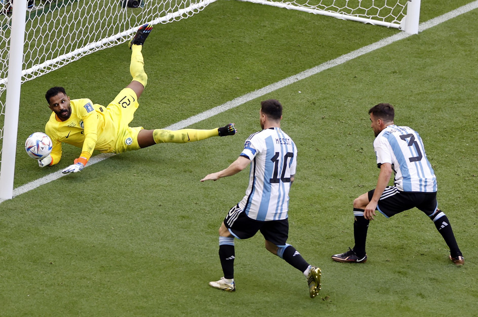 Argentina sintió el impacto de manera notable y le llevó varios minutos reaccionar y generar una ocasión clara tras un remate de Lautaro Martínez, en el cual la pelota rebotó en Tagliafico y casi entra, pero la atajó el arquero saudí.