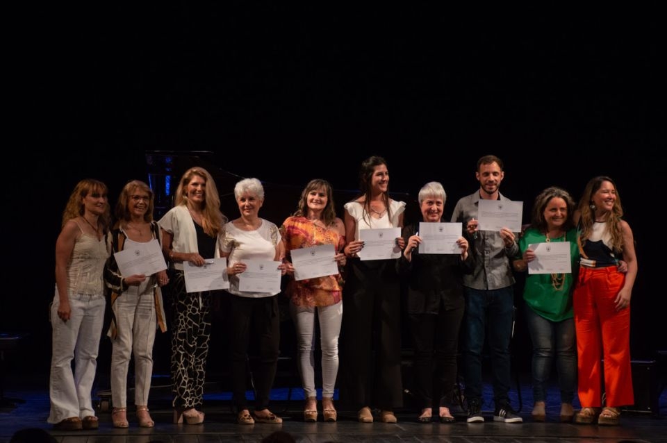 Los acordes de guitarras abrieron el encuentro en el que 125 egresadas y egresados de cuatro de las cinco escuelas que integran el Liceo Municipal “Antonio Fuentes del Arco”, recibieron sus diplomas y certificados. Fue en el Teatro Municipal “1° de Mayo”, con una emotiva ceremonia en la que participaron familias, docentes, directivos, integrantes de la cooperadora, representantes gremiales y autoridades municipales.