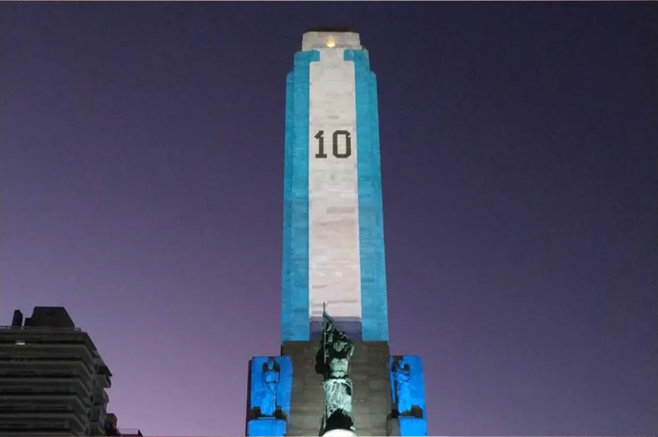 El Monumento Nacional a la Bandera de Rosario se iluminó de celeste y blanco para homenajear a dos nacidos en la ciudad santafesina como Lionel Messi y Ángel Di María, a horas del debut de la Selección Argentina en el Mundial Qatar 2022 contra Arabia Saudita.