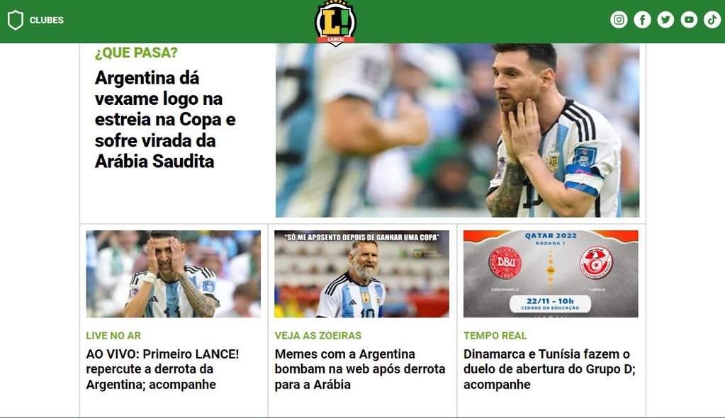 La inesperada derrota de Argentina frente a Arabia Saudita por 2 a 1 en su debut en el Mundial de Qatar dio lugar a ironías y bromas por parte de los medios de comunicación de Brasil.