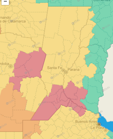En tanto, para el sur provincial el alerta es por temperaturas con efecto alto a extremo en la salud.