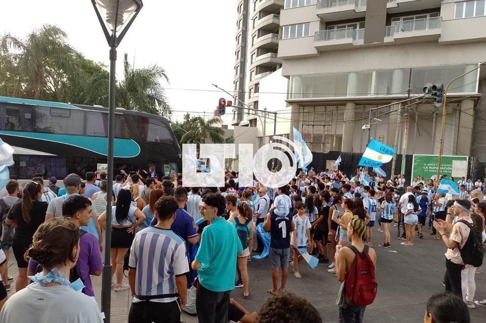 La tensión dio paso a la emoción y la euforia en el boulevard santafesino. Algunos hinchas optaron por encontrarse a ver el partido en la pantalla gigante ubicada en el Molino Franchino, estos fueron los primeros en vestir a la ciduad de celeste y blanco.