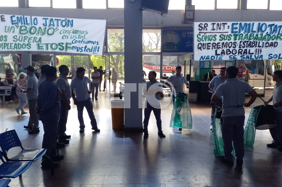 Unos 20 empleados de la Terminal de Colectivos se manifestaron esta mañana reclamando mejoras en las condiciones laborales que habían pautado en su momento con autoridades de la Municipalidad y solicitan un bono de fin de año.