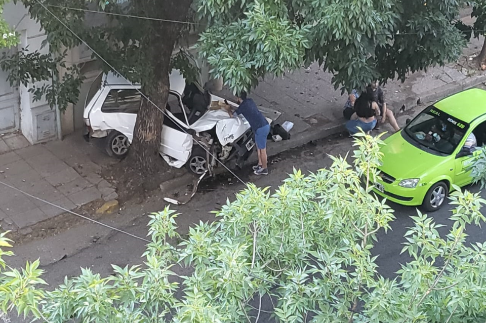Un fuerte accidente se registró bien temprano en la intersección de las calles Urquiza y Suipacha, donde un auto Fiat Uno blanco impactó contra un árbol. Según datos que trascendieron había cuatro personas pero no registraron heridas de gravedad.