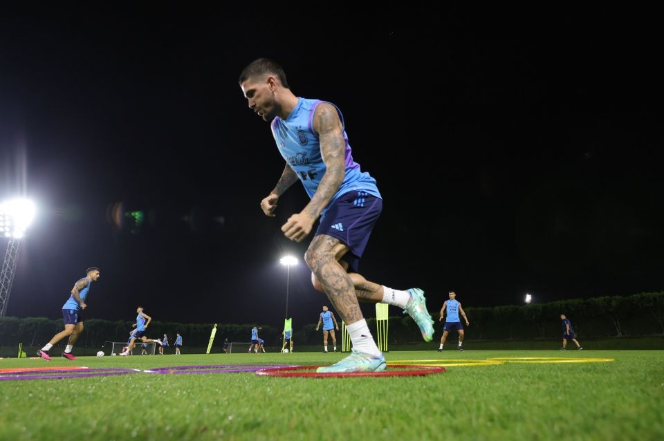 El plantel trabajó a puertas cerradas en la Universidad de Qatar pero el futbolista de Atlético de Madrid no pudo completar el entrenamiento a la par de sus compañeros. La AFA todavía no publicó el parte diario de la actividad pero la molestia de De Paul sería en el isquiotibial.