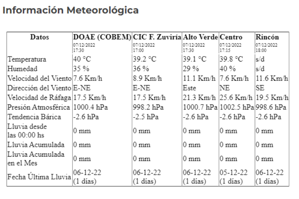 En la ciudad de Santa Fe los registros del municipio de Santa Fe marcaron temperaturas que llegaron a los 40°C en los medidores ubicados en el Cobem, este miércoles.
