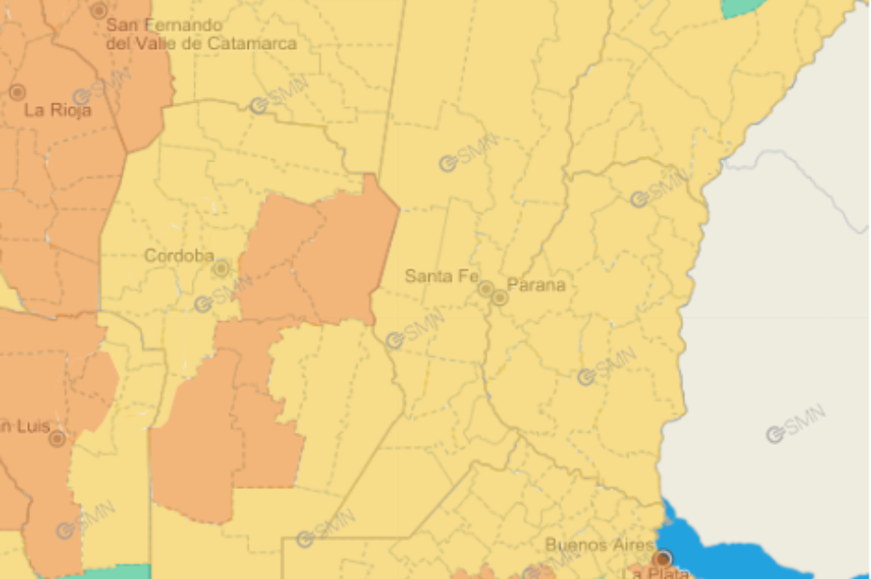 El nivel amarillo de alerta por temperaturas extremas significa un efecto leve a moderado en la salud y "pueden ser peligrosas, sobre todo para los grupos de riesgo, como niños y niñas, personas mayores de 65 años y con enfermedades crónicas", precisó el SMN.