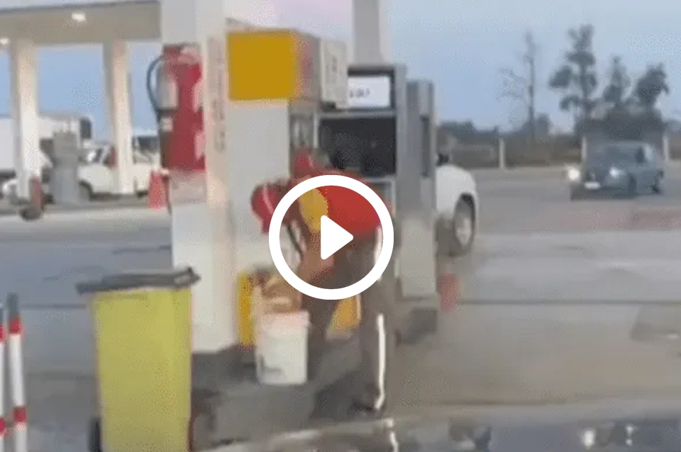 Una familia que iba a cargar combustible a la estación de servicio ubicada a la vera de la Ruta 34, grabó una video que en pocos minutos revolucionó las redes sociales. Con su teléfono registraron el momento en el que uno de los empleados refrescaba a un perrito dentro de un balde con agua.