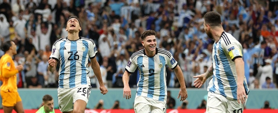 Argentina: Emiliano Martínez; Nahuel Molina, Cristian Romero, Nicolás Otamendi, Lisandro Martínez y Marcos Acuña; Rodrigo De Paul, Enzo Fernández y Alexis Mac Allister; Lionel Messi y Julián Álvarez. DT: Lionel Scaloni.