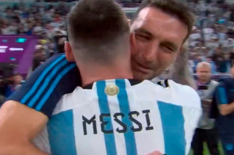 "Esto es todo tuyo, estamos ahí", se alcanza a entender que le dijo Messi a Scaloni, quien segundos después se quedaba con lágrimas en los ojos. Un momento especial para los dos Lionel, el líder del cuerpo técnico y el líder del equipo, fundidos en un abrazo.