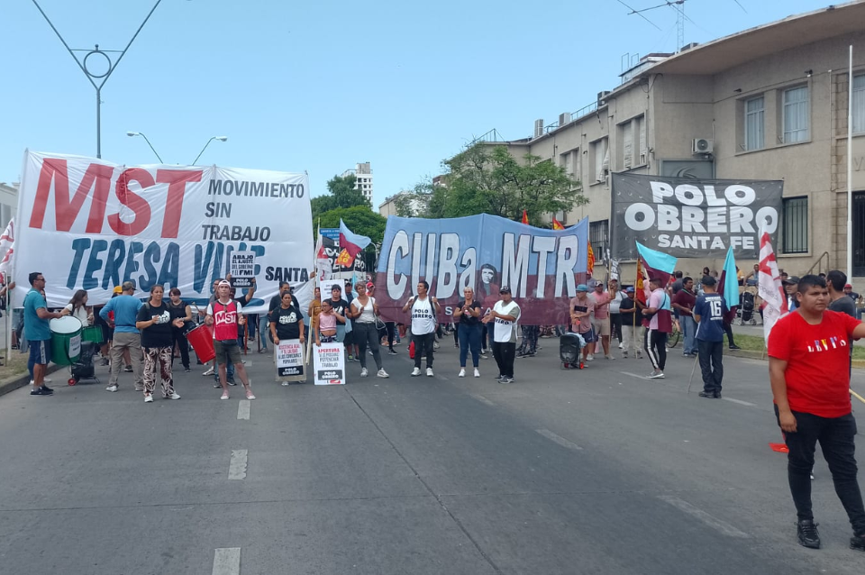Cristina, referente de una de las agrupaciones que se están manifestando, explicó por el móvil de LT10 que es una jornada de lucha que se está haciendo en todo el país y detalla que “en este clima de calor, Desarrollo Social envía a nuestro comedores toneladas de polenta” y agrega que también reclaman por las altas de planes sociales que hace mas de 3 meses se les prometió pero por el momento no recibieron nada, a los cual le suman el desacople del Salario Vital y Móvil al potenciar trabajo.