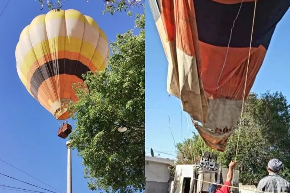 El globo tuvo que descender forzosamente por pérdida de sustentación. Los vecinos lo asistieron y retomó el vuelo.