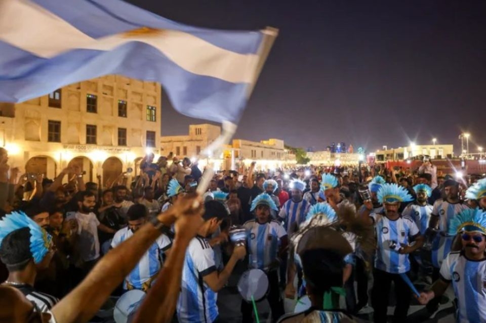 Un grupo numeroso de hinchas argentinos se manifestó frente al hotel en donde se hospeda la delegación de la AFA por la falta de entradas parta la final del Mundial Qatar 2022 y por el alto precio que deben pagar por un reventa.