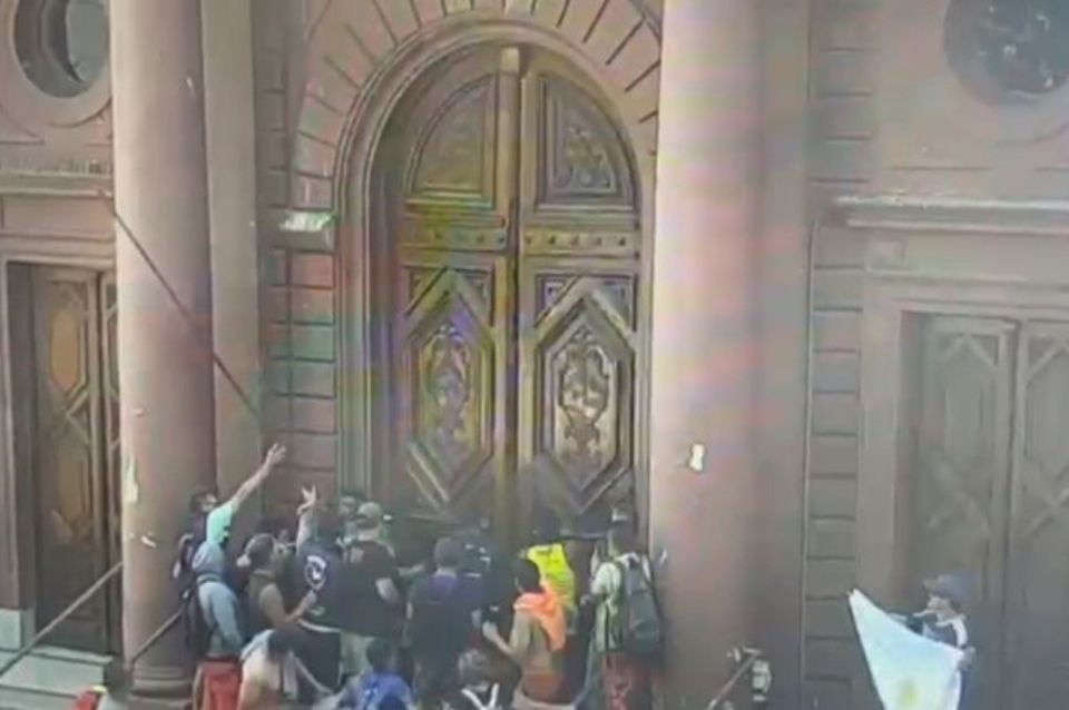 Luego de la violenta irrupción de trabajadores portuarios en el Concejo Deliberante de Rosario y en la Municipalidad, este jueves al mediodía se conocieron las imágenes de la cámara de seguridad ubicada frente al edificio. En el video se observa claramente como un grupo de trabajadores, que fue creciendo con el correr de los minutos, fuerzan la enorme puerta de entrada del municipio hasta romperla. Y luego ingresan en forma violenta para tomar el recinto.