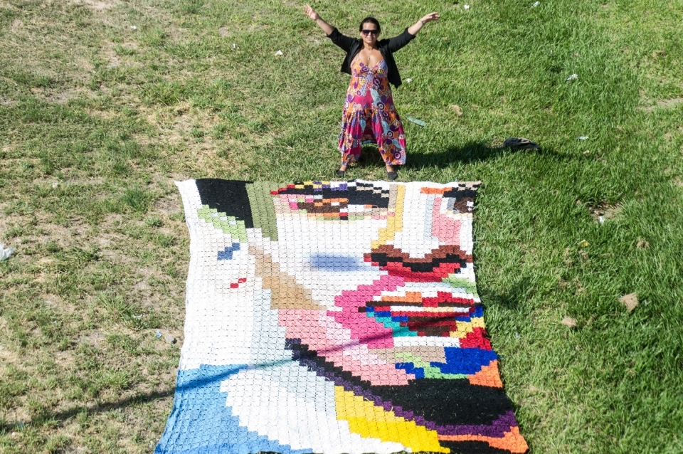 "Lo hice con la técnica granny square, que son los famosos cuadraditos de crochet, y tiene 60 filas de 48 cuadros cada una", explicó Elvira sobre el tapiz que pesa entre 7 y 8 kilos.
