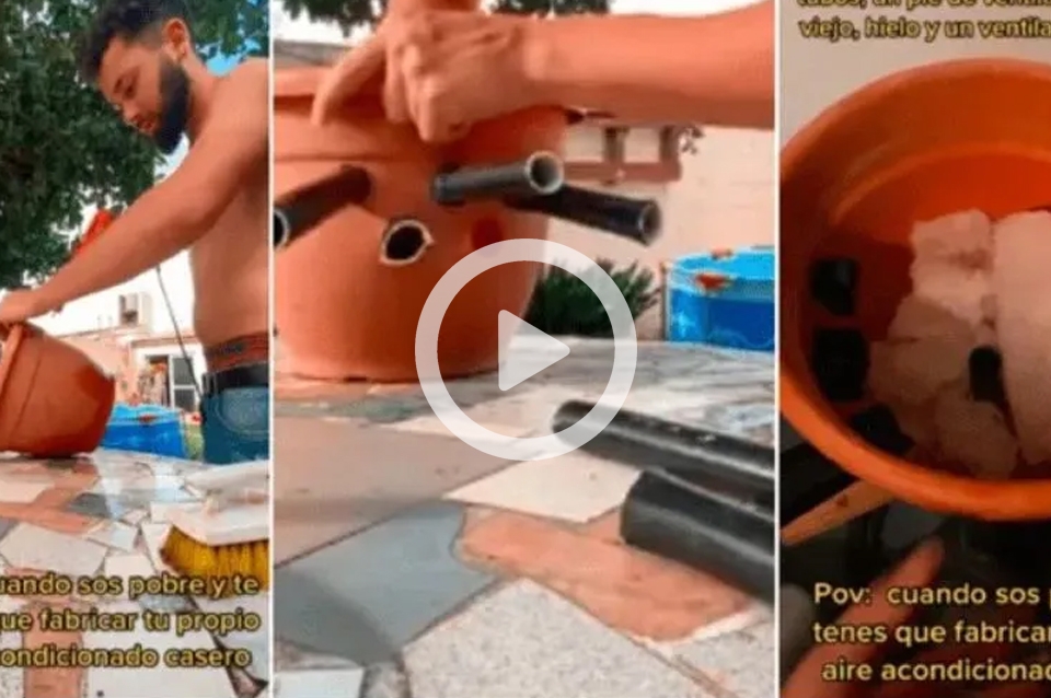 El usuario de TikTok @gastonrolle mostró en su cuenta de la red social de origen chino cómo construyó su propio “aire acondicionado casero” para hacerle frente al calor con una maceta, unas mangueras, cinta, hielo y un ventilador.