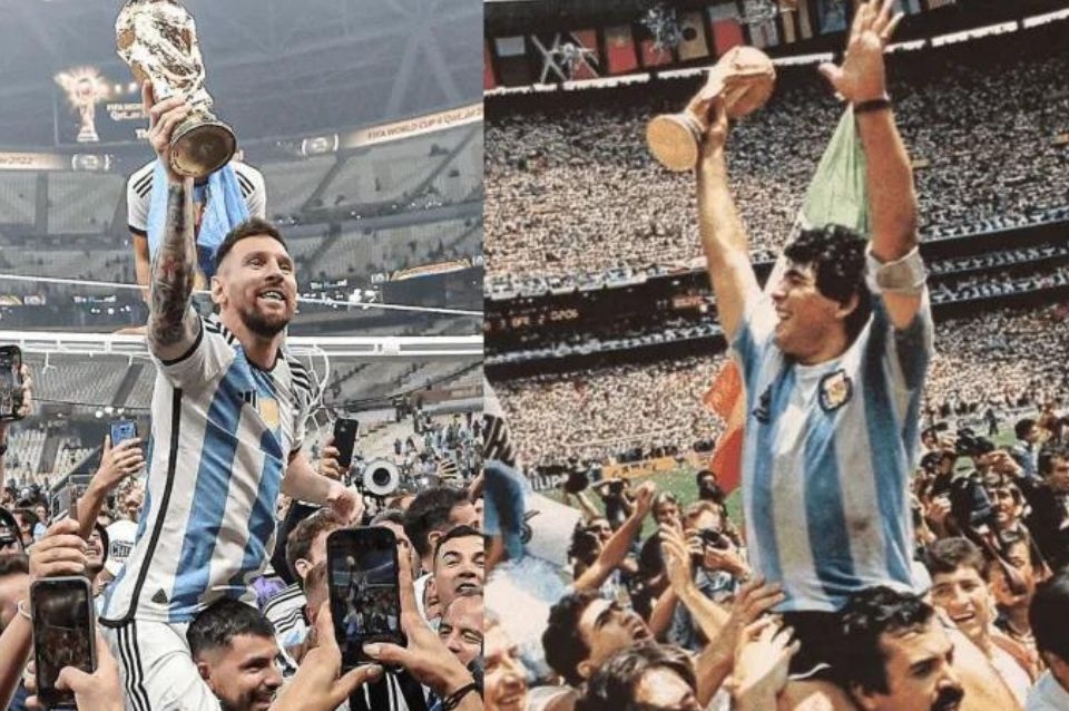 Antes de meterse en el túnel, la delegación albiceleste dio la vuelta olímpica en el imponente estadio de Doha y Lionel Messi fue llevado en andas por Sergio Kun Agüero como el gran capitán y líder de esta conquista.