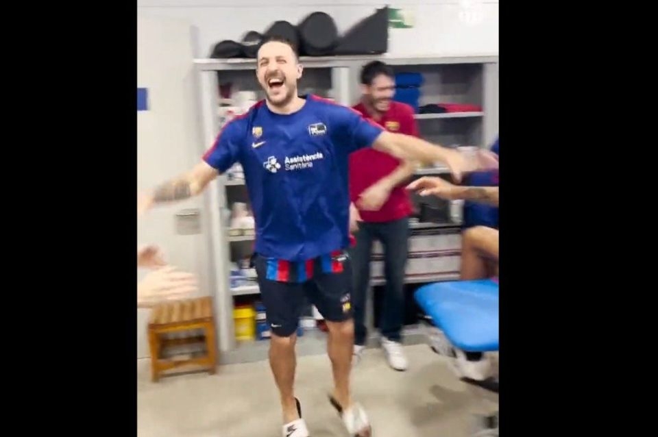 El argentino Nicolás Laprovíttola, del equipo de básquetbol del Barcelona, festejó hoy la obtención del título mundial del seleccionado de fútbol en Qatar 2022, abrazado al técnico de su equipo, el lituano Sarunas Jasikevicius. Lo propio hizo el santafesino Juan Fernández, en un video que se viralizó.