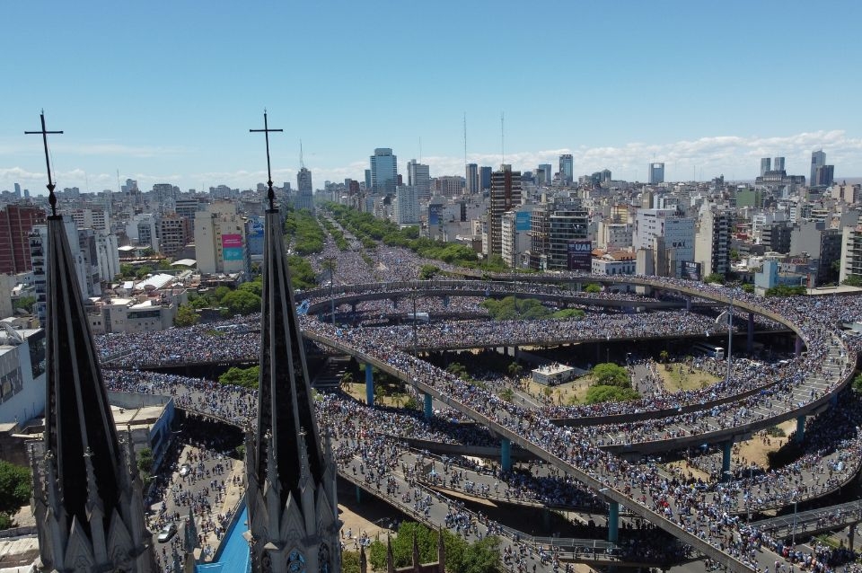 Cuatro millones de personas configuraron este martes una gigantesca marea albiceleste y salieron a las calles para saludar a la Selección Argentina campeona del mundo, en una imponente demostración de agradecimiento que será recodada por décadas en el país.