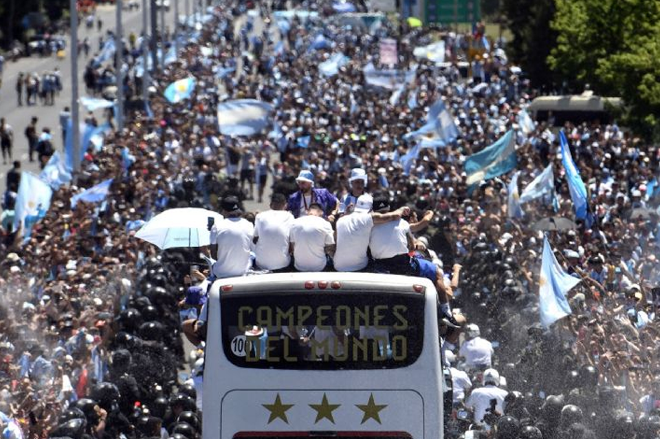El plantel tenía previsto llegar hasta el Obelisco, pero ante la imposibilidad de hacerlo, debido a la multitud que colmaba la calles porteñas, el ómnibus trasladó a los jugadores hasta el Parque Roca y desde allí abordaron los helicópteros de la Policía Federal para retornar al predio de la AFA en Ezeiza.