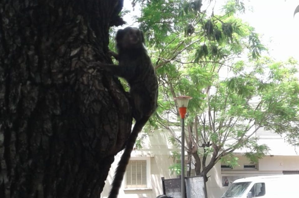 Desde muy temprano por la mañana, vecinos y puesteros que tienen una feria en la Plaza Escalante (Martín Zapata y 9 de julio) vieron un mono tití suelto entre los árboles.