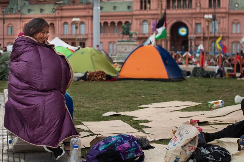 La agrupación Tupac Amaru continúa con el acampe instalado en Plaza de Mayo con el objetivo de que el presidente Alberto Fernández indulte a la líder popular Milagro Sala y conmute así su condena. Días atrás, la Corte Suprema reafirmó su pena a 13 años de prisión por la causa conocida como "Pibes Villeros".