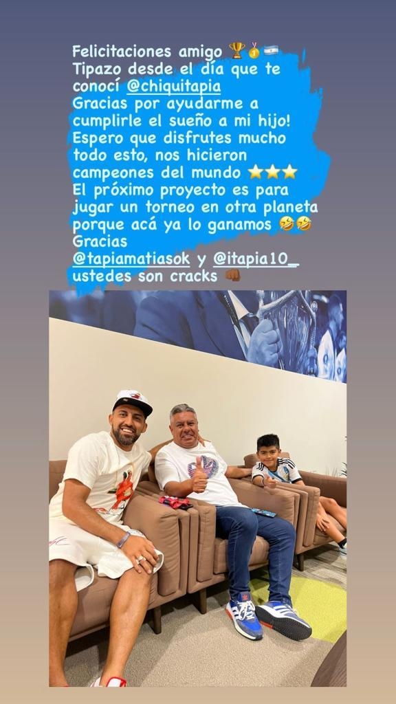 Se trata de un mensaje de agradecimiento hacia el presidente Claudio Tapia, que le posibilitó compartir importantes momentos con su familia. Tuvo la chance de visitar la concentración de los jugadores y asistir también a los partidos.